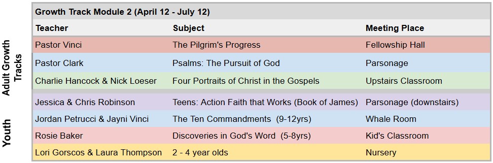 9:45am: Kids Sunday School & Adult Growth Tracks